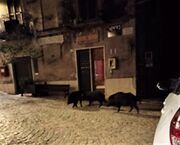 Non è la prima volta e non sarà affatto l'ultima che un gruppo di cinghiali viene notato mentre attraversa le vie di una cittadina. Dal momento, però, che fino ad oggi nessuno a Calvi dell'Umbria era riuscito a documentare questo "evento" ci sembra opportuno darne conto ai nostri lettori. Accade così che Igino Racanicchi, un cittadino calvese, sia riuscito ad immortalare i tre cinghiali adulti mentre scorrazzavano allegramente in piazza Mazzini, il cuore del paese. Ironia della sorte è che gli ungulati abbiano scelto per la loro escursione proprio l'angolo della piazza dove è situato uno storico negozio di alimentari, come a voler confermare che loro (i cinghiali) erano lì in cerca di cibo. Questo ennesimo spostamento in un centro urbano da parte di questi animali, dimostra quanto la situazione generale sia ormai fuori controllo, essendo che i cinghiali sono diventati degli "ospiti" fissi di migliaia di centri urbani. Con tutti i rischi che presenze del genere possono rappresentare per la popolazione.