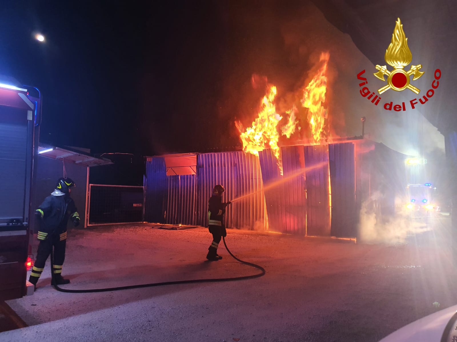 Incendio all'interno di un rimessaggio di camper situato in Strada della Selva a Narni. Simao nella zona di Marrano a poca distanza da strada dei Confini, quella che separa il territorio nasrnese da quello ternano. Stando alle informazioni diffuse dai Vigili del fuoco, erano circa le quattro di questa mattina (mercoledi 5 novembre) quando è arrivata la chiamata alla loro centrale operativa. Giunti sul posto gli uomini del 115 hanno trovato un capannone adibito ad officina che erano avvolto dalle fiamme. Al suo interno c'erano un camper, due macchine operatrici, attrezzature, oltre a fusti di olio e lubrificanti altamente infiammabili. L'intervento è stato compiuto da due squadre dei Vigili del Fuoco di Terni con cinque mezzi ed una squadra proveniente dal distaccamento di Amelia con due mezzi. Dopo alcune ore l'incendio è stato spento e sono state avviate le operazioni di di bonifica oltre a quelle tendenti a verificare le cause che hanno determinato il rogo. Sul posto si sono portati anche i carabinieri.