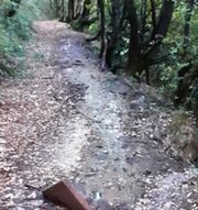 (Nonostante la foto non sia di ottima qualità si possono notare i liquami che attraversano la stradina in mezzo al bosco)