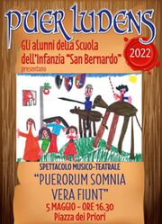 Torna il "Puer Ludens" all'interno del programma della Corsa all'Anello. Dopo due anni di silenzio 'coercitivo', i "San Bernardini", ovvero i piccoli alunni della scuola dell'Infanzia "San Bernardo" torneranno ad animare piazze e vie del centro storico di Narni. Saranno infatti loro i protagonisti della 24esima edizione del "Puer Ludens", la speciale 'sezione' dedicata ai giochi medioevali dei più piccoli, che si avrà luogo giovedi 5 maggio alle 16,30 in piazza dei Priori a Narni. Attraverso la rievocazione dei festeggiamenti dell'epoca in onore di San Giovenale, gli alunni rivivranno il passato che è parte integrante del loro patrimonio culturale. Lo faranno andando alla scoperta delle tradizioni, delle radici storiche, uniti da un unico grande amore per la propria città. Immersi nella suggestiva piazza dei Priori, calati nell'affascinante atmosfera medievale, gli alunni della scuola dell'infanzia "San Bernardo" metteranno in scena uno spettacolo musico-teatrale dal titolo: "Puerorum Somnia Vera Fiunt", che, tradotto sta a significare "I sogni dei bambini diventeranno realtà". Dopo lo spettacolo, intorno alle 17, ci sarà la cerimonia dell'"Investitura Pueri" ed a seguire il "Convivio Pueri", offerto generosamente dal Terziere Mezule.