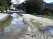 (Nella foto le grandi pozzanghere che si formano in via della Vignola quando piove)