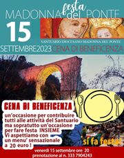 La festa della Madonna dle Ponte si è conclusa domenica 10 settembre, ma nel programma risultano ancora alcuni appuntamenti che fanno da appendice all'evento. Tra questi gli organizzatori ci segnalano la cena di beneficenza in programma venerdi 15 settembre. L'appuntamento conviviale avrà luogo all'interno della rinnovata tensostruttura in grado di ospitare un considerevole numero di persone. La struttura, che rimarrà in piedi tutto l'anno, essendo coperta, è in grado di assicurare lo svolgimento dei vari eventi anche in caso di maltempo. "Quella di venerdi 15 settembre - dicono gli organizzatori - sarà un'occasione che permetterà a chi verrà a cena di contribuire alle attività del Santuario, senza trascurare l'aspetto ricreativo di questo appuntamento che permetterà ai presenti di fare festa insieme". Il comitato organizzatore parla, inoltre, di un menù "sensazionale" e su questo non c'è dubbio alcuno dal momento che nei giorni della festa, la cucina dello stand gastronomico ha riscosso un grandissimo successo sia per la grande varietà che per la qualità delle pietanze che fanno parte del menù. In questo senso, un particolare non trascurabile è quello riguardante le cuoche; si tratta infatti di tutte donne volontarie che abitano nei pressi del Santuario, ma anche più lontano e che nel periodo della festa si mettono a disposizione, facendo un volontariato assai prezioso, alla stregua dei tanti ragazzi/e che svolgono altre mansioni, a cominciare da quella di cameriere. Il costo della cena è di 20 euro e per le prenotazioni è possibile chiamare il numero 333.7904243.