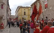 Duomo gremito per la messa solenne in onore di San Giovenale. Narni, nella mattinata del 3 maggio, ha omaggiato nel migliore dei modi il proprio Patrono. Alla messa hanno partecipato autorità civili e militari, oltre alle rappresentanze dei terzieri della Corsa all'Anello. Al termine della liturigia si è spalancato il portone che immette sulla scalinata della Cattedrale e da lì è uscito il corteo. Il giro è stato quello di sempre: piazza Garibaldi, via dell'Arco Romano, via Garibaldi, piazza dei Priori. Lì il vescovo Francesco Antonio Soddu è salito sulla loggia del Palazzo dei Priori dalla quale ha impartito la benedizione ai presenti. Molto partecipata anche la processione che ha visto una folta presneza di fedeli.