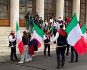 Prestigiosa esibizione degli Sbandieratori di Narni nel corso del programma "Viva Rai 2!" condotto da Fiorello. Il popolare showman, come è noto, tutte le mattine di buon'ora intrattiene un folto pubblico televisivo in diretta dal "glass" allestito al Foro Italico di Roma. Tra gag, notizie, musica e tanta satira Fiorello, insieme a Fabrizio Bigio ed all'umbro (è di Bastia) Mauro Casciari, conduce una sorta di show che da ormai molto tempo è entrato nella classifica dei programmi più seguiti dal pubblico. Gli sbandieratori narnesi, sono stati invitati a partecipare alla trasmissione andata in onda lunedi 18 marzo, giornata nella quale ricorrevano i 40 anni da quando Toto Cutugno era stato primo in classifica con la canzone "L’italiano". Così Fiorello, a "Viva Rai 2!", ha voluto omaggiare il cantautore scomparso il 22 agosto dello scorso anno, facendo allestire una coreografia molto suggestiva e caratterizzata da un bellissimo tricolore nel piazzale del Foro Italico. "Siamo stati contattati - spiega Alessio Rubini degli Sbandieratori di Narni -, da una collaboratrice del grande coreografo Luca Tommassini, con il quale avevamo già collaborato in passato in diverse trasmissioni. Tra queste 'Carramba che sorpresa' e 'Donna sotto le stelle'. Ci è stato proposto di far parte del gruppo attraverso il quale sarebbero stati ricreati alcuni aspetti tipici dell'italia che sarebbero stati riportati nella coreografia. Ovviamente abbiamo accettato con entusiasmo e così ci siamo preparati per organizzare in fretta e furia la trasferta romana. Eravamo 8 sbandieratori più il nostro portagonfalone. Dovevano essere giù al 'glass' del Foro Italico di Roma alle 5 e quindi siamo partiti alle 3,30 da Narni; ci siamo cambiati all'interno delle strutture dello 'Stadio del nuoto' ed alle 6 abbiamo iniziato a fare le prove della puntata. La coreografia è stata fatta poco prima che iniziasse la diretta e le bandiere che abbiamo utilizzato, tutte rigorosamente colorate di bianco, rosso e verde, ci sono state fornite dai responsabili della trasmissione che le avevano fatte realizzare per questa speciale ricorrenza. Una volta finito abbiamo invitato Tomassini a venirci a trovare a Narni in occasione della imminente edizione della 'Corsa all'anello'. Per tutti noi - conclude Rubini -, quella del 18 marzo da Fiorello è stata una bellissima esperienza che non dimenticheremo".