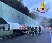 Va a fuoco la merce caricata a bordo di un autoarticolato, Rato bloccato all'altezza della galleria di San Pellegrino