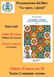 Arrone: sabato 15 marzo al teatro comunale presentazione del nuovo libro di Antonio Fresa