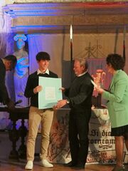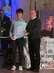 Nella “Sala delle Gesta Rossiane”, all’interno della “Rocca dei Rossi”, di San Secondo Parmense è andata in scena la sesta edizione del “Galà dei Cavalieri” e la premiazione del “Miglior Cavaliere d’Italia”. Si tratta del prestigioso ed unico premio in ambito nazionale, riservato alle Giostre e Quintane. La manifestazione è stata ideata dall’aretino Roberto Parnetti (che è stato insignito del titolo di Ambasciatore del Palio consegnato dal Principe Ferrante Gonzaga ultimo discendente della Casata di Camilla Gonzaga), ed organizzata dall’Associazione Palio delle Contrade con la collaborazione del Comune di San Secondo Parmense. In una sala gremita da tanti appassionati e delegazione di varie manifestazioni a cui si sono uniti i messaggi giunti dai massimi responsabili delle giostre di Ascoli, Sulmona, Piazza Armerina, Monselice, Soriano nel Cimino, Cori oltre a quelli dei Presidenti dei Comitati delle Regioni Umbria e Marche e del consigliere regionale della Toscana Gabriele Veneri, la cerimonia ha incoronato i protagonisti della stagione 2023 e sul palco si sono alternati i vincitori delle sei categorie in cui è suddiviso il premio. Le Giostre che hanno assegnato punti sono state in totale 61 di cui 41 “storiche”, 12 “non storiche”, 6 “storiche con pugnalino” e 2 “non storiche con pugnalino". Moderatori della serata Sara Bini (Presidente dell'Associazione Palio delle Contrade), Marzia Fanzini (Responsabile delle relazione esterne) e l’ideatore del premio Roberto Panetti. Dopo i saluti del Sindaco di San Seconod P.se Giulia Zucchi e la presentazione della pittrice della “Pergamena d’Autore” Katia Pirozzi di Castiglion Fiorentino (Ar) la cerimonia è entrata nel vivo con la premiazione delle prime tre categorie. Per la “Scuderia più vittoriosa” (in totale 13 nella classifica finale) la vittoria è andata ex aequo alla Scuderia del Terziere Fraporta di Narni (per i cavalli Mazzini, Sou Encantada e Don Medellin) e la Scuderia Atlanda di Ascoli Piceno (con i cavalli Magic Strike, Speedewll blue e Club Tropicana). Per il “Proprietario del cavallo più vittorioso” (39 nella classifica finale) vincitore è risultato Guido Gentili di Sarteano (Si) con il cavallo Audubon che si è aggiudicato anche il premio per il “Binomio più vittorioso” (77 nella classifica finale). E’ stata poi la volta della presentazione del primo gioco in scatola ispirato alle Giostre e Quintane realizzato da Aldo Ghetti e Willer Giacomoni di Faenza (Ra). Sono poi continuate le premiazioni con la quarta categoria “Miglior Amazzone” (15 in classifica finale) che, come la passata edizione, ha visto nel podio tre ragazze di Pistoia; la vittoria è andata a Ilaria Signorini, al secondo posto Chiara Bartoletti e al terzo Federica Lopriore. Ad Ilaria Signorini è andato anche il trofeo speciale per avere vinto tre edizioni consecutive (2020/2021, 2022, e 2023). La quinta categoria è stata quella del “Miglior Giovane Under 18” (8 nella classifica finale) con il successo di Giulio Vedovini di Arezzo, davanti a Jacopo Matticari di Narni e al terzo, ex aequo: Alessandro Coppini (assente alla premiazione) di Pistoia, Francesco Matticari di Narni e Melissa Privitera (che ha delegato David Signorini al ritiro del premio) di Pistoia. Infine nell’ultima categoria del “Miglior Cavaliere” (66 nella classifica finale) il successo, per la prima volta, è andato ex aequo a Guido Gentili di Sarteano (Si) e Lorenzo Melosso di Ascoli Piceno che hanno preceduto al secondo posto Luca Innocenzi (che ha delegato Manfredo Orazi al ritiro del premio) di Foligno e, nel terzo gradino del podio, un altro ex aequo con Massimiliano Lutero di Sezze (Lt) e Lorenzo De Simone di Bibbiano (Re). Due momenti particolare sono stati il collegamento telefonico con Massimo Gubbini, lo sfortunato cavaliere folignate reduce da terribile incidente occorso nelle prove della Quintana, e la chiamata sul palco degli ex cavalieri presenti in sala: Enrico Vedovini, Enrico Giusti, Willer Giacomoni, Franco Melosso, Federico Stendardi e Maurizio Frulio. A consegnare i premi sono stati: il Principe Ferrante Gonzaga (ultimo discendente della Casata di Camilla Gonzaga), Stefano Cantoni (Presidente Lions Club 1 Colorno La Reggia), Paolo Giuffredi (Presidente Cna), Michele Ziveri (Vice Presidente Confartigianato Parma), Giulia Zucchi (Sindaco di San Parmense) e Giacomo Scalvenzi (Segretario Aerss). La chiusura della cerimonia è stato con il passaggio di testimone alla delegazione dell’Armata di Pentecoste - Sciò la Pica di Monterubbiano (Fm), che ospiterà l'edizione 2024, presenti con una delegazione composta da Consigliere Comunale Giampiero Polini, in rappresentanza del Sindaco Meri Marziali, dalla baby sindaca Angelica Polini e la presidente della Corporazione degli Zappaterra Ludovica Patrizi.