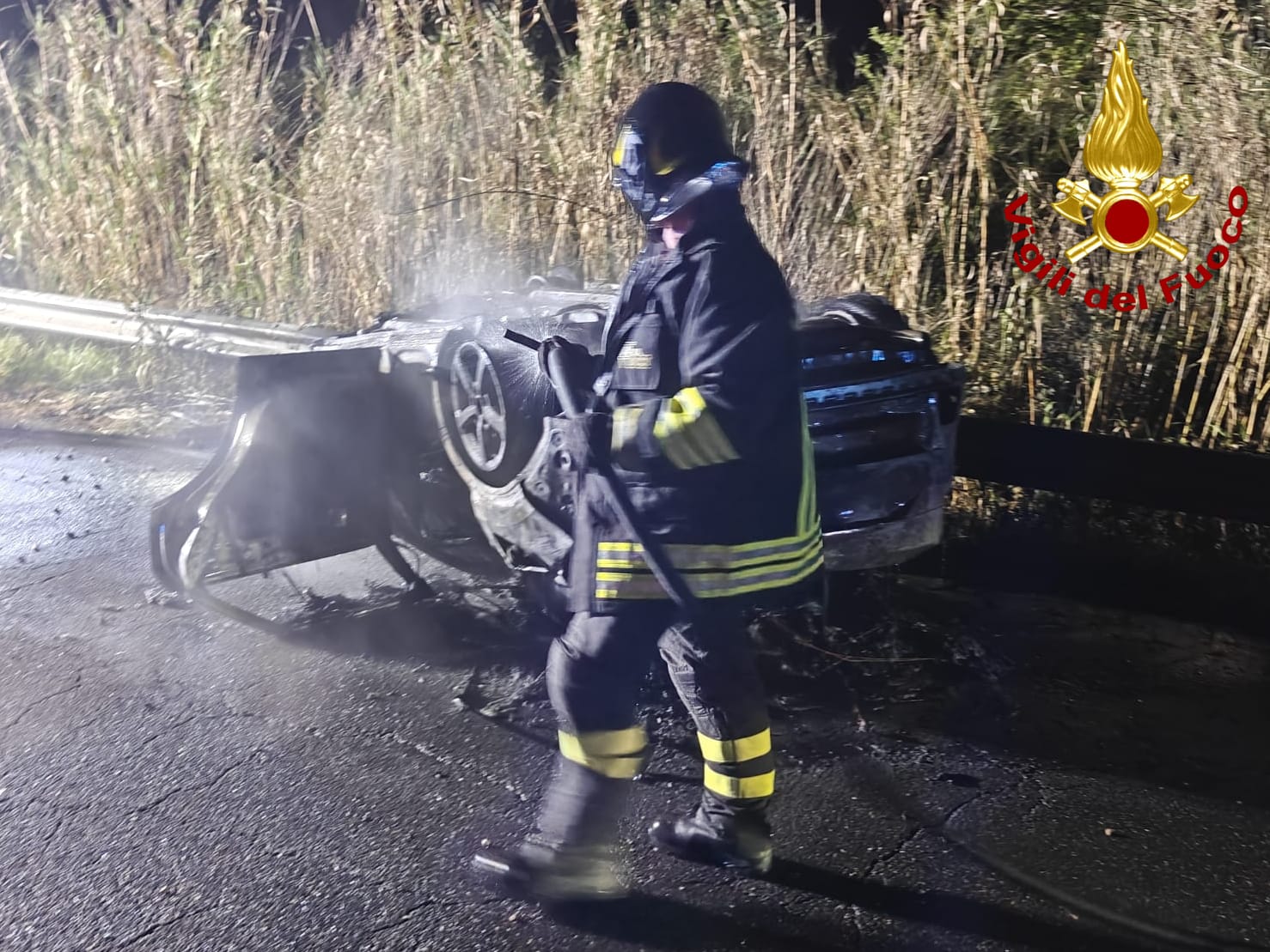 Incidente nella notte fra Narni e Amelia, Suv si ribalta e prende fuoco all'altezza dello svincolo per il Rato