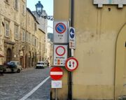Narni, guazzabuglio di segnali all'angolo del palazzo che ospita il teatro, Forza Italia: "che brutta immagine!"