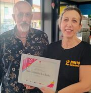 (Nella foto il presidente di Banca del Tempo Narni, Elio Agabiti, e la signora Sonia Giacinti, titolare del Bar "La Baita" di Narni Scalo).