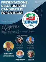 Sabato 28 maggio alle 10, presso la sala consiliare del Comune di Narni, avrà luogo la presentazione della lista dei candidati di Forza Italia. Il partito di Silvio Berlusconi, come è noto, sostiene il candidato sindaco Cecilia Cari. Saranno presenti, oltre alla candidata ed a tutti e sedici i componenti della lista, Paolo Barelli, presidente del gruppo di Forza Italia alla Camera dei Deputati, Raffaele Nevi, vice presidente del Gruppo di Forza Italia alla Camera dei Deputati, Fiammetta Modena, Senatrice di Forza Italia e Andrea Romizi, sindaco di Perugia e coordinatore regionale del partito.