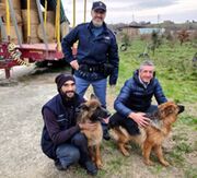 Due cani salvati dal provvidenziale intervento di agenti della Polizia di Stato. E' successo nel primo pomeriggio di venerdi 9 febbraio nei pressi di Narni Scalo. Ad allertare gli agenti è stato il proprietario di un terreno adiacente la linea ferroviaria. Quest'ultimo ha avvertito della presenza dei due cani un operatore della Polfer di Terni, libero dal servizio. L'uomo ha riferito all'agente che in un terreno di sua prorpeità, adiacente alla linea ferroviaria, della presenza di due cani di grossa taglia, intrappolati in un’area recintata da una rete metallica, appartenente alla Rete Ferroviaria Italiana. I cani, entrati probabilmente da un varco, non erano più riusciti ad uscire ed avrebbero potuto finire sui binari, perdendo la vita e causando incidenti alla circolazione ferroviaria. Il poliziotto ha avvertito i suoi colleghi in servizio che hanno immediatamente dato l’allarme alla direzione delle ferrovie per far rallentare la circolazione dei treni in transito, chiamando contemporaneamente l’ufficio Asl competente, per stabilire lo stato di quiete dei cani e risalire, attraverso i microchip, al loro proprietario. Poco dopo, grazie all’intervento tempestivo di tutti gli operatori, compreso il proprietario del terreno, i cani – due splendidi esemplari di pastore tedesco - sono stati messi in sicurezza ed è stato possibile rintracciare il loro proprietario, che ha dichiarato che gli erano stati rubati la notte precedente e che aveva già sporto denuncia presso la Forestale di Amelia. Una brutta avventura che si è risolta – per fortuna – in pochissimo tempo per Ira e Kenia, mamma e figlia, che sono state riaffidate, in perfetta salute, al loro padrone.