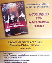 Sabato 29 marzo, alle 18,30, presso la chiesa di Sant'Antonio di Narni Scalo avrà luogo la presentazione del libro dal titolo "A colloquio con Santa Teresa d’Avila". Il libro è stato scritto da don Roberto Tarquini. "Si tratta - spiega l'autore -, di un libro che accompagna nel cuore della spiritualità cristiana e introduce alla contemplazione di Dio". Interverranno il vescovo di Terni, Narni e Amelia, Mons. Francesco Antonio Soddu e la Prof.ssa Stefania Parisi. La presentazione del libro sarà preceduta, alle 17,30 dalla Messa vespertina presieduta dal Vescovo.