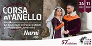 La 57esima edizione della Corsa all'Anello di Narni si svolgerà dal 24 aprile all'11 maggio. Essa, come spiegano dall'associazione che gestisce l'evento "regalerà un viaggio nel tempo tra tradizione e innovazione". La festa, profondamente legata al patrono San Giovenale e agli 'Statuta Illustrissimae Civitatis Narniae' del 1371, celebra il passato della città senza dimenticare di guardare al futuro, con appuntamenti che intrecciano storia, cultura e contemporaneità. Le strade di Narni si trasformeranno in uno scenario trecentesco, animato da scorci di vita quotidiana dell’epoca, celebrazioni religiose, benedizioni dei cavalieri, spettacoli teatrali, musica, presentazioni letterarie, talk, convegni e mostre d’arte che coinvolgeranno tutto il centro storico. Non mancherà l’enogastronomia, protagonista nei forni e nelle hostarie dei tre Terzieri, pronti ad accogliere cittadini e turisti con sapori autentici e tradizionali. La manifestazione si concluderà in grande stile, come di consueto, con il suggestivo e impeccabile Corteo storico in notturna (sabato 10 maggio) e la spettacolare gara equestre al Campo de li Giochi (domenica 11 maggio), dove i cavalieri bianconeri di Mezule, rossoblù di Fraporta e arancio viola di Santa Maria si contenderanno l'ambito anello d’argento.