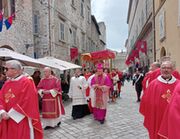 Duomo gremito per la messa solenne in onore di San Giovenale. Narni, nella mattinata del 3 maggio, ha omaggiato nel migliore dei modi il proprio Patrono. Alla messa hanno partecipato autorità civili e militari, oltre alle rappresentanze dei terzieri della Corsa all'Anello. Al termine della liturigia si è spalancato il portone che immette sulla scalinata della Cattedrale e da lì è uscito il corteo. Il giro è stato quello di sempre: piazza Garibaldi, via dell'Arco Romano, via Garibaldi, piazza dei Priori. Lì il vescovo Francesco Antonio Soddu è salito sulla loggia del Palazzo dei Priori dalla quale ha impartito la benedizione ai presenti. Molto partecipata anche la processione che ha visto una folta presneza di fedeli.
