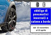 Scatta il 15 novembre l'obbligo di avere a bordo catene o di montare pneumatici invernali
