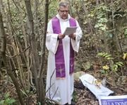 Taizzano: don Fabrizio dice Messa nel vecchio cimitero immerso nei boschi ed abbandonato nel 1937