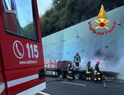 Va a fuoco la merce caricata a bordo di un autoarticolato, Rato bloccato all'altezza della galleria di San Pellegrino